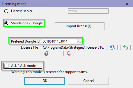 The license received is locked to a dongle identifier.