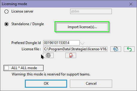 | Click on "Import license(s)...", select the file you have received, and validate. | ![]() |